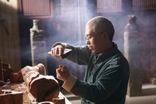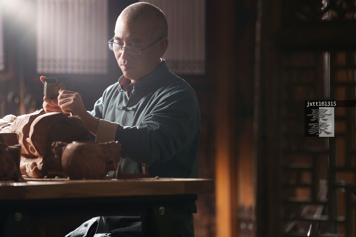 图片标题: 工匠师在工作室里认真雕刻