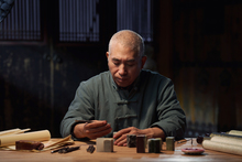 图片标题: 在工作室里认真雕刻印章的专家