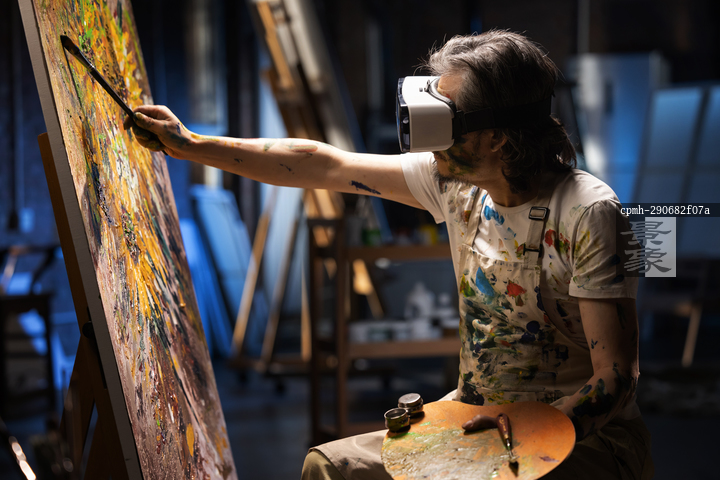 图片标题: 带着VR眼镜创作的艺术家
