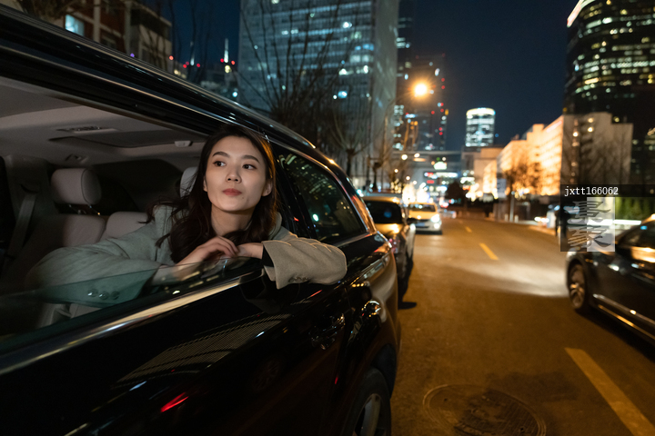 图片标题: 车内的青年商务女人
