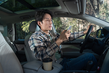 图片标题: 驾驶汽车的青年女人