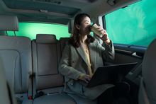图片标题: 驾驶汽车的青年女人