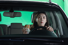 图片标题: 车内打电话工作的青年商务男士