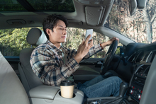 图片标题: 车内的青年商务男人使用手机