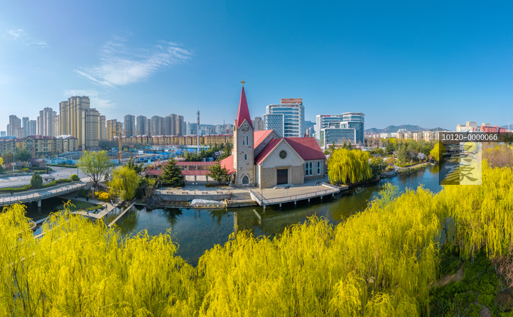图片标题: 航拍青岛王家下河基督教堂