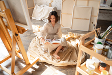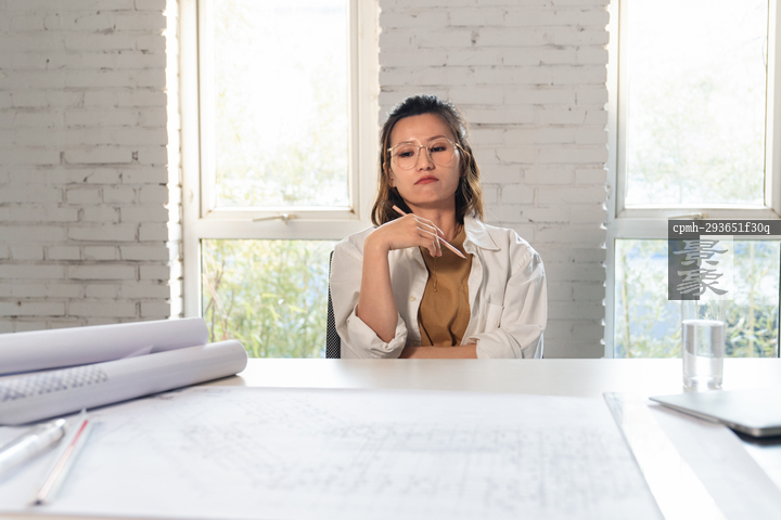 图片标题: 室内画图纸的青年设计师