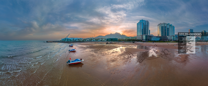 图片标题: 航拍青岛石老人海水浴场暮景