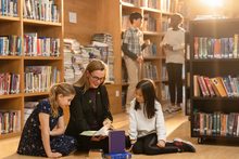 图片标题: 教师辅导小学生做科学实验