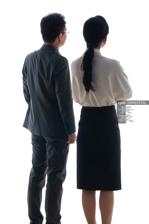 图片标题: 中年商务男士与青年商务女士的背影