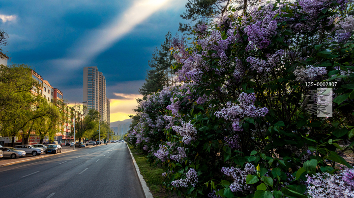 图片标题: 丁香开放的城市街道
