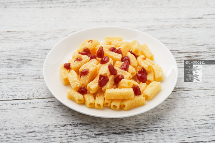 图片标题: 点缀有番茄酱的玉米空心薯条