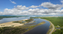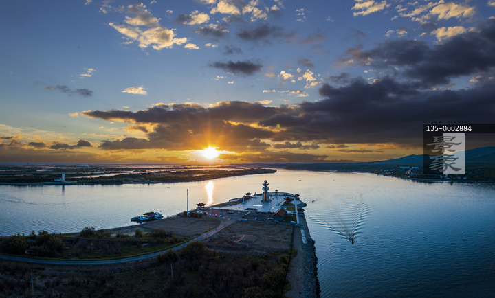 图片标题: 航拍抚远东极广场黑乌两江汇合处