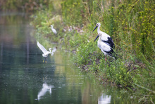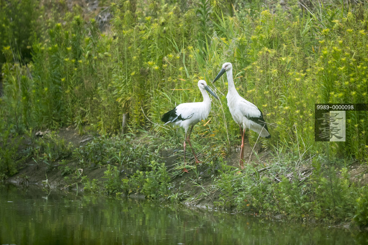 图片标题: 山东郯城:2只“鸟类大熊猫”东方白鹳现身觅食