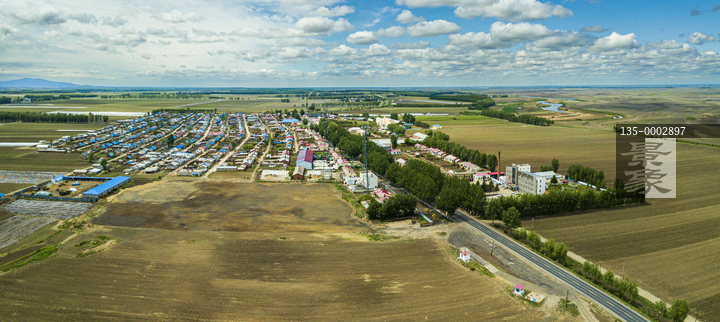 图片标题: 航拍东北三江平原大地村庄