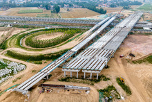 图片标题: 河南滑县:安罗高速跨越濮卫高速枢纽立交紧张施工