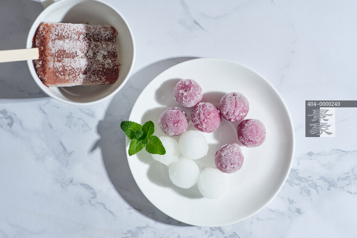 图片标题: 红豆冰棍和多种口味的冰球冷食