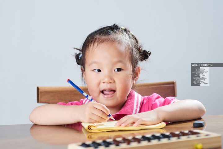 图片标题:     在书桌前做珠算练习的幼童