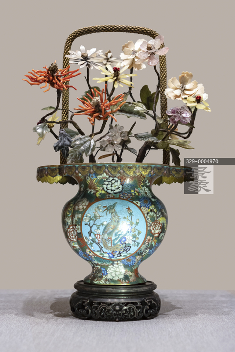 图片标题: 北京颐和园博物馆-铜胎珐琅满花落地开花凤纹多宝花篮-清代