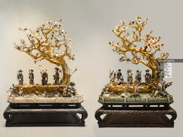 图片标题: 北京颐和园博物馆-金漆梅花树八仙过海槎形盆景-清代一对