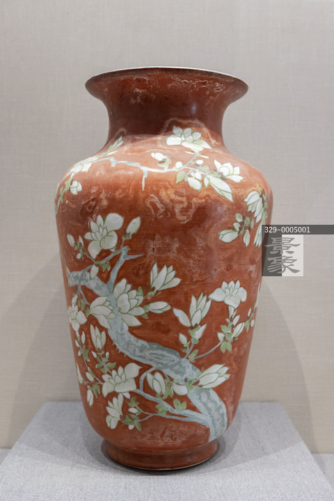 图片标题: 北京颐和园博物馆-红地玉兰花玻璃瓶-日本-19世纪末至20世纪初