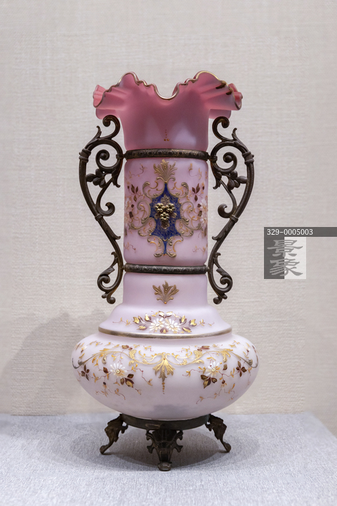 图片标题: 北京颐和园博物馆-双铜耳粉红玻璃花插-19世纪末至20世纪初