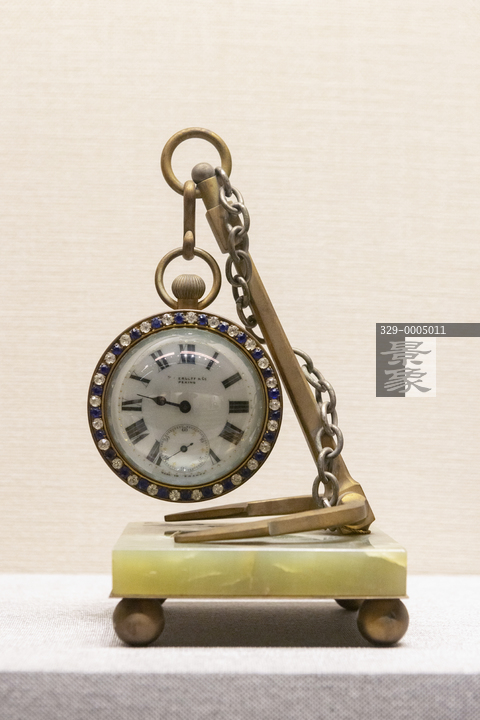 图片标题: 北京颐和园博物馆-铜镀金锚架玻璃球挂表-法国-19世纪