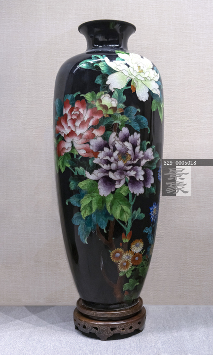 图片标题: 北京颐和园博物馆-七宝烧墨地牡丹纹瓶-日本-19世纪末至20世纪初