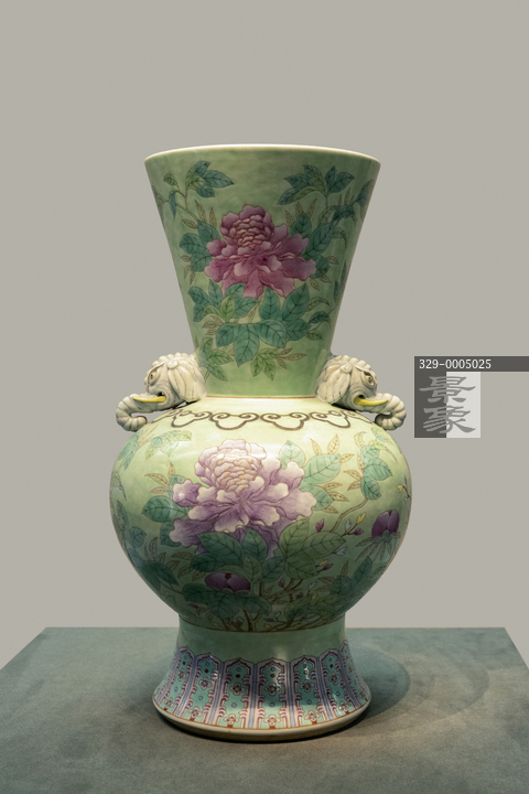 图片标题: 北京颐和园博物馆-浅绿地粉彩花鸟纹象耳瓶-清光绪