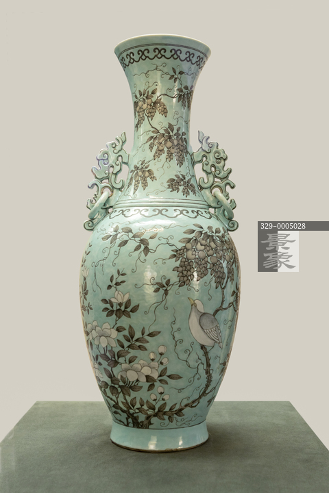 图片标题: 北京颐和园博物馆-浅绿地墨彩花鸟纹双耳活环瓶-清光绪
