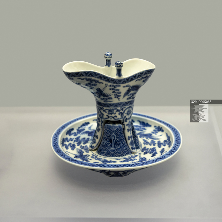 图片标题: 北京颐和园博物馆-青花云鹤爵式杯盘-清乾隆