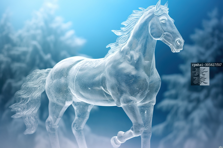 图片标题: AI生成的创意插图冰雕骏马