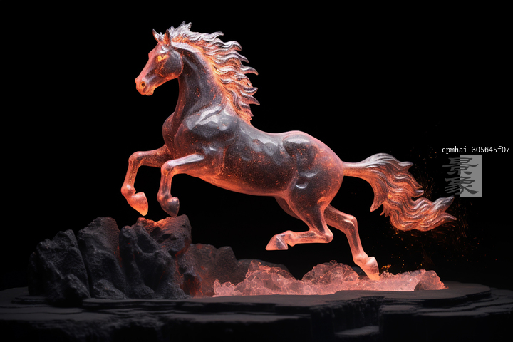 图片标题: AI生成的创意插图冰雕骏马