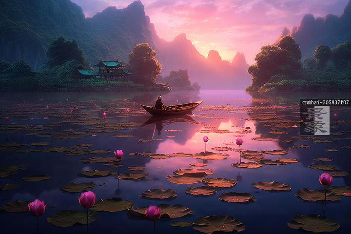 图片标题:     AI生成的创意插图光映下的荷塘