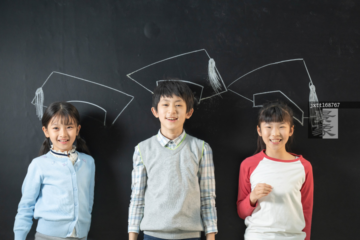 图片标题:     站在黑板前的快乐小学生