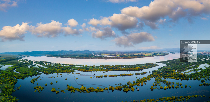 图片标题: 航拍夏季乌苏里江和湿地风光