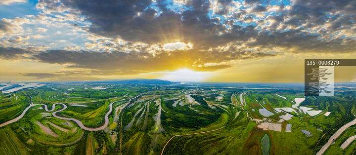 图片标题: 航拍黑瞎子岛晚霞湿地风光