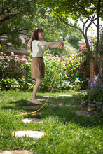 图片标题: 青年美女和宠物狗