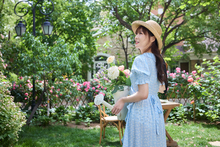 图片标题: 年轻美女在庭院里采摘鲜花