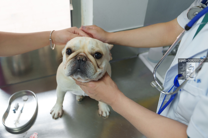 图片标题: 宠物医生准备为宠物狗注射疫苗