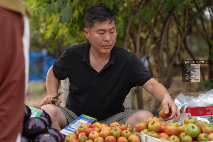 图片标题: 商贩在市场上卖菜