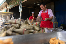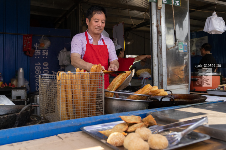 图片标题: 卖早点的商贩炸油条