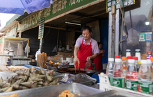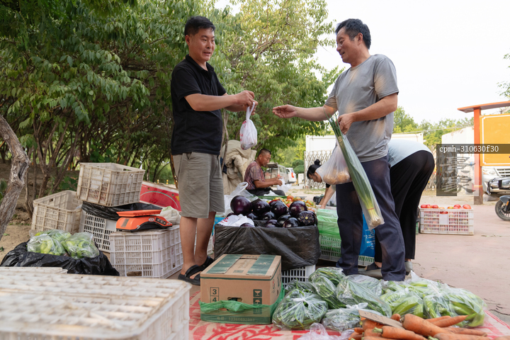 图片标题: 商贩在市场上卖菜