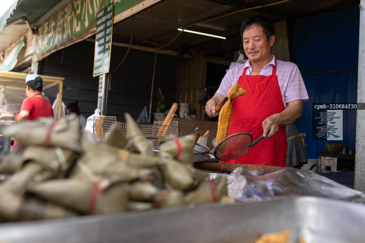 图片标题: 炸油条的商贩