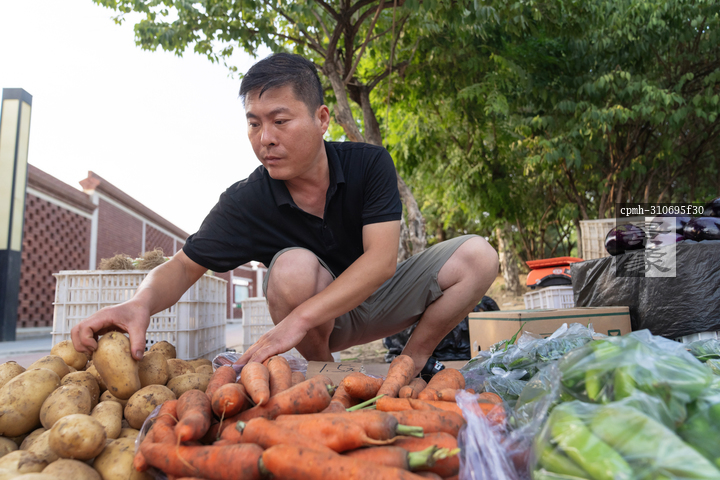 图片标题: 商贩在市场上卖菜