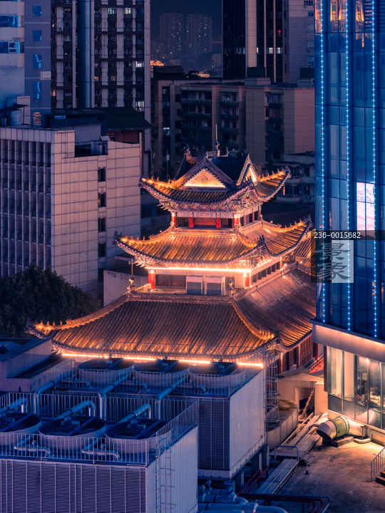 图片标题: 重庆城市建筑-罗汉寺夜景
