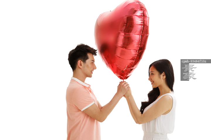 图片标题: 快乐情侣拿着心型气球