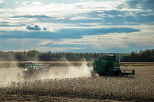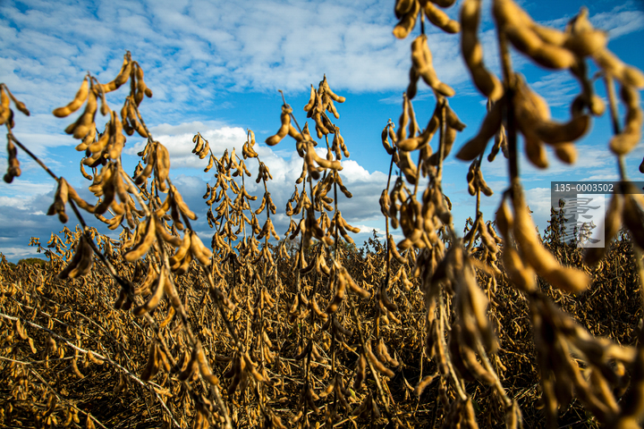 图片标题: 东北成熟的大豆收获