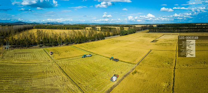 图片标题: 秋天收割机收割水稻