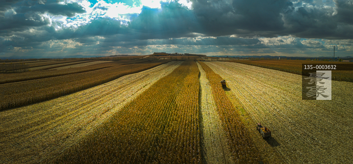 图片标题: 航拍玉米大地收割