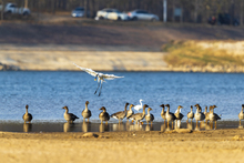 图片标题: 山东郯城:琵鹭竞飞“舞”沂河